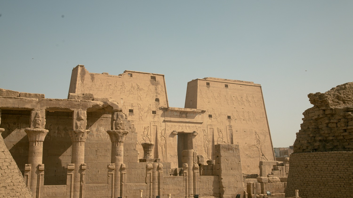 Ранним утром экскурсия в один из самых монументальных храмов Древнего Египта – храм Эдфу. Храмовый комплекс в его нынешнем виде был построен в эпоху Птолемеев и посвящен богу Хору (с головой сокола). Стены комплекса богато украшены барельефами.